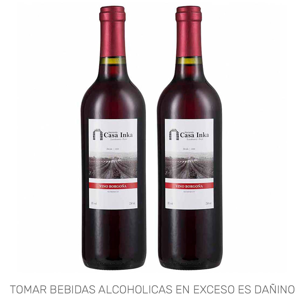 Pack HACIENDA CASA INKA Vino Tinto Borgoña Botella 750ml Paquete 2un