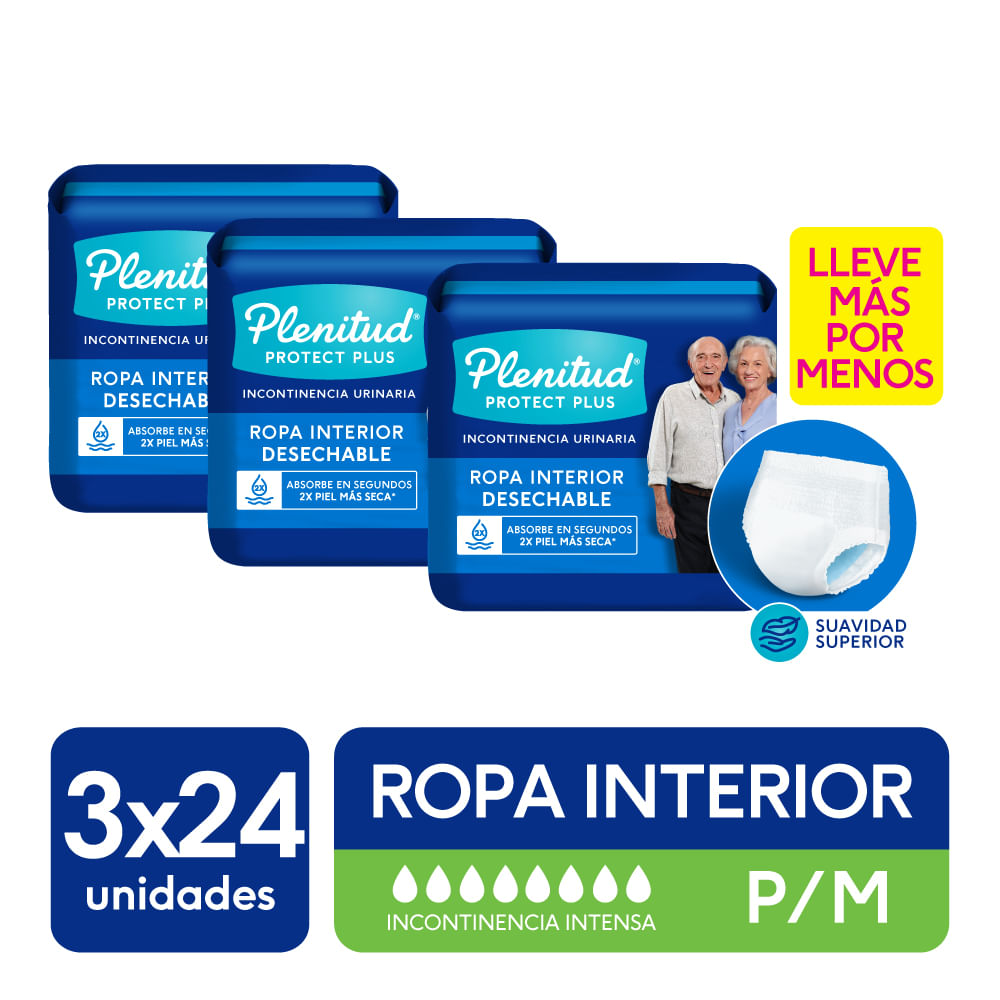 Pack Pañal para Adulto PLENITUD Protect Plus Incontinencia Intensa Talla P/M Paquete 24un x 3un