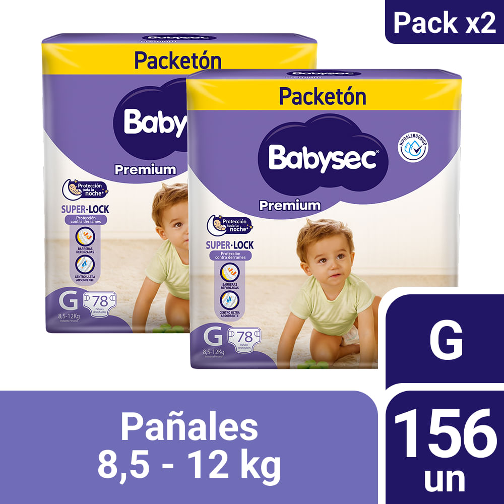Pack Pañales para Bebé BABYSEC Premium Talla G Paquete 78un x 2un