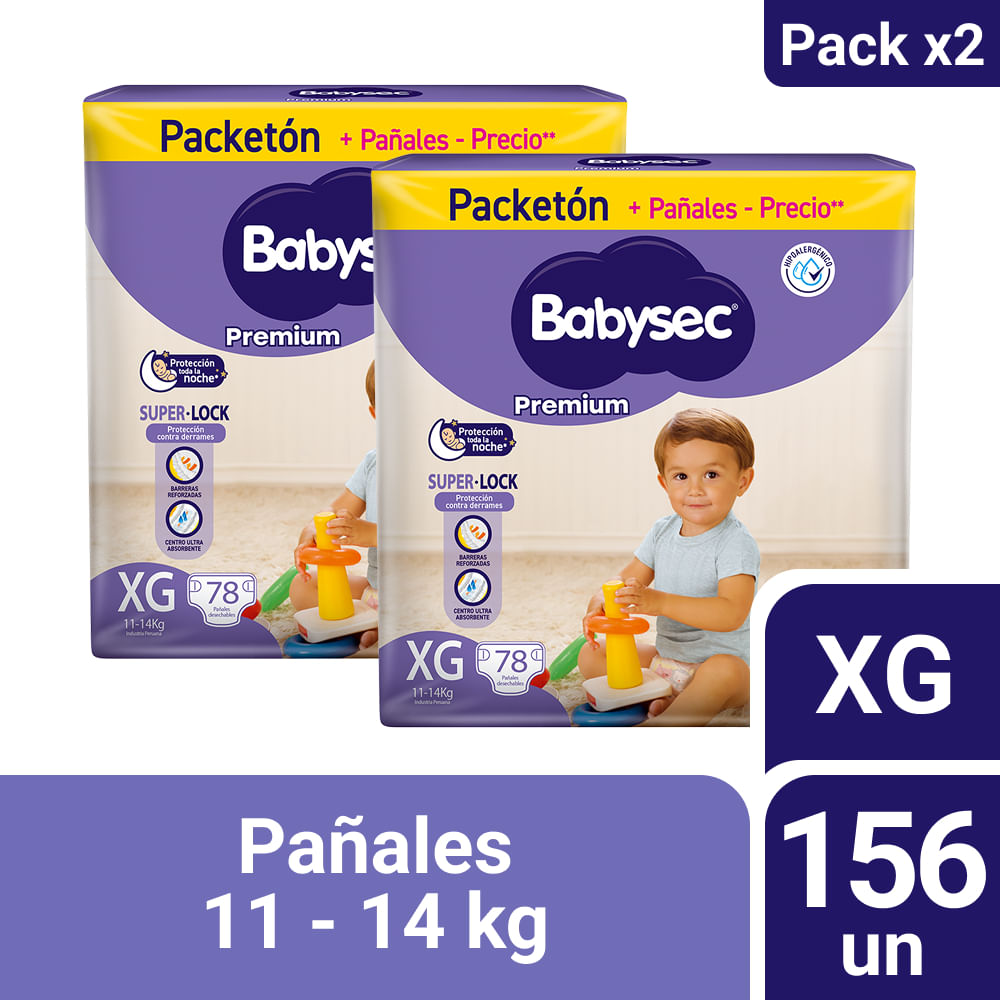 Pack Pañales para Bebé BABYSEC Premium Talla XG Paquete 78un x 2un
