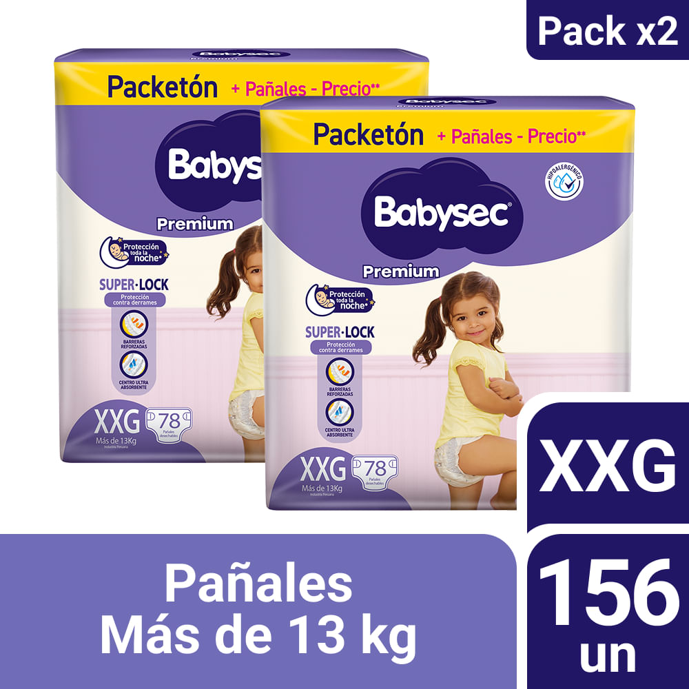 Pack Pañales para Bebé BABYSEC Premium Talla XXG Paquete 78un x 2un