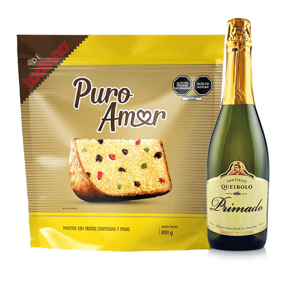 Pack Panetón PURO AMOR Bolsa 800g + Espumante SANTIAGO QUEIROLO Primado Botella 750ml