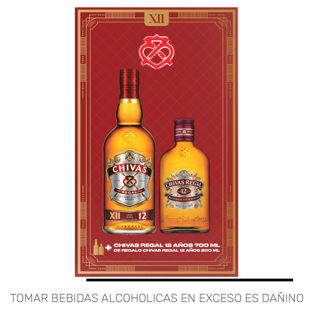 Pack Whisky CHIVAS REGAL 12 Años Botella 700ml + Whisky CHIVAS 12 Años Botella 200ml