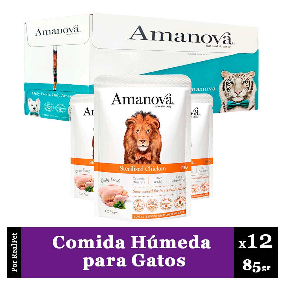 Pack x12 Comida Húmeda Gato Esterilizado Amanova Pollo 85gr