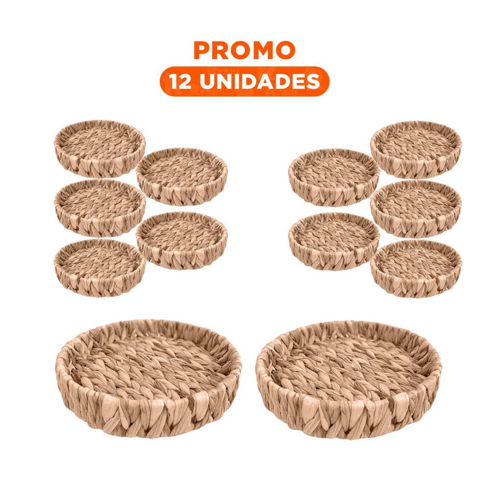 Pack12 Recipiente Artesanal Redondo Grass 23x4cm Mostaza Para Decoracion Y+Regalo Sticker