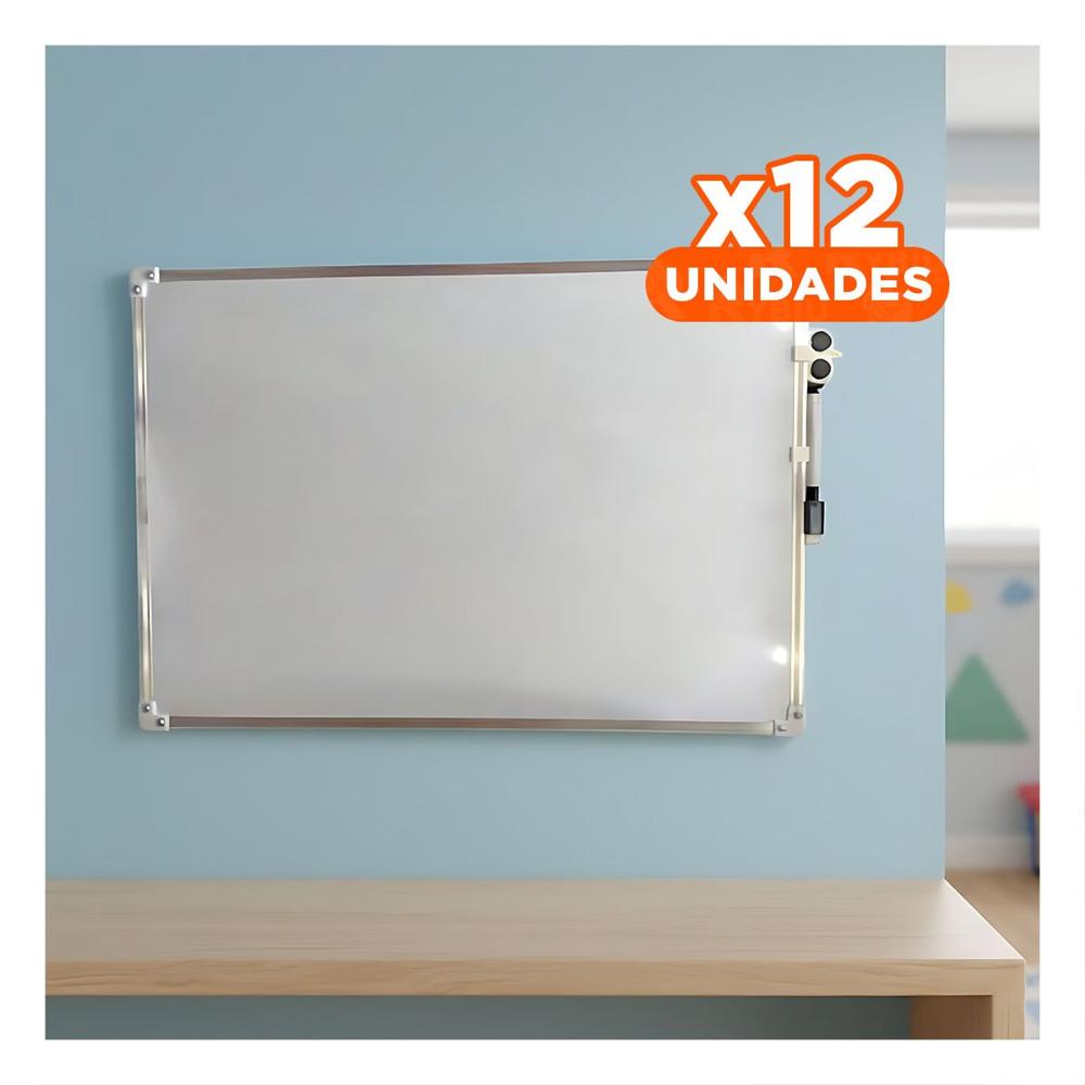Pack12 Tablon Blanco 25x35cm con Marco Metal para Apuntes Claros en Escritorio