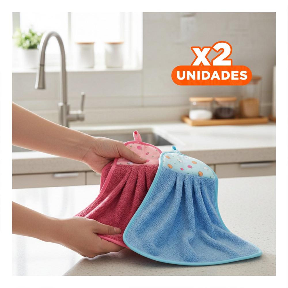 Pack2 Juego Practico 2 Piezas Fucsia y Azul Toallas Colgador 28x38cm Y+Regalo Sticker