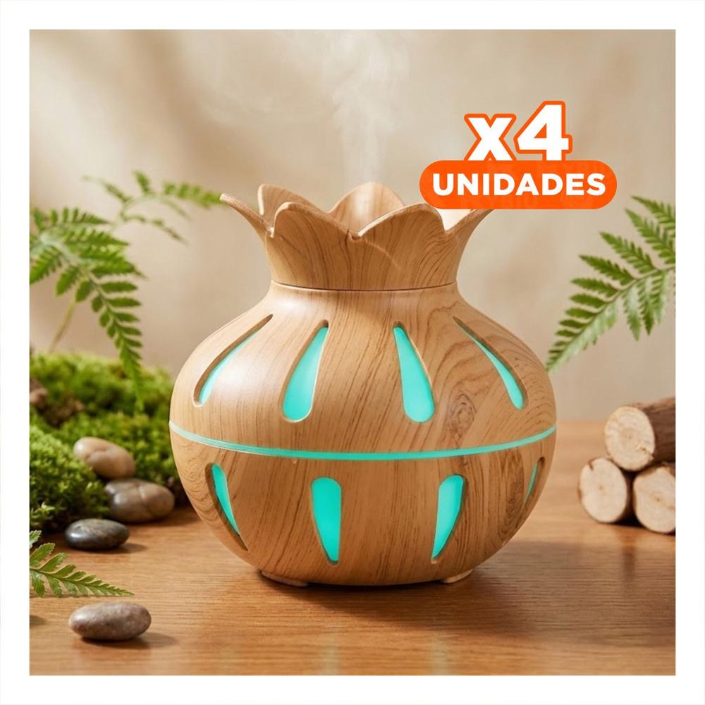 Pack4 Humificador con Forma Floral para Uso Diario 12x11cm Color Madera Claro Y+Papel Regalo