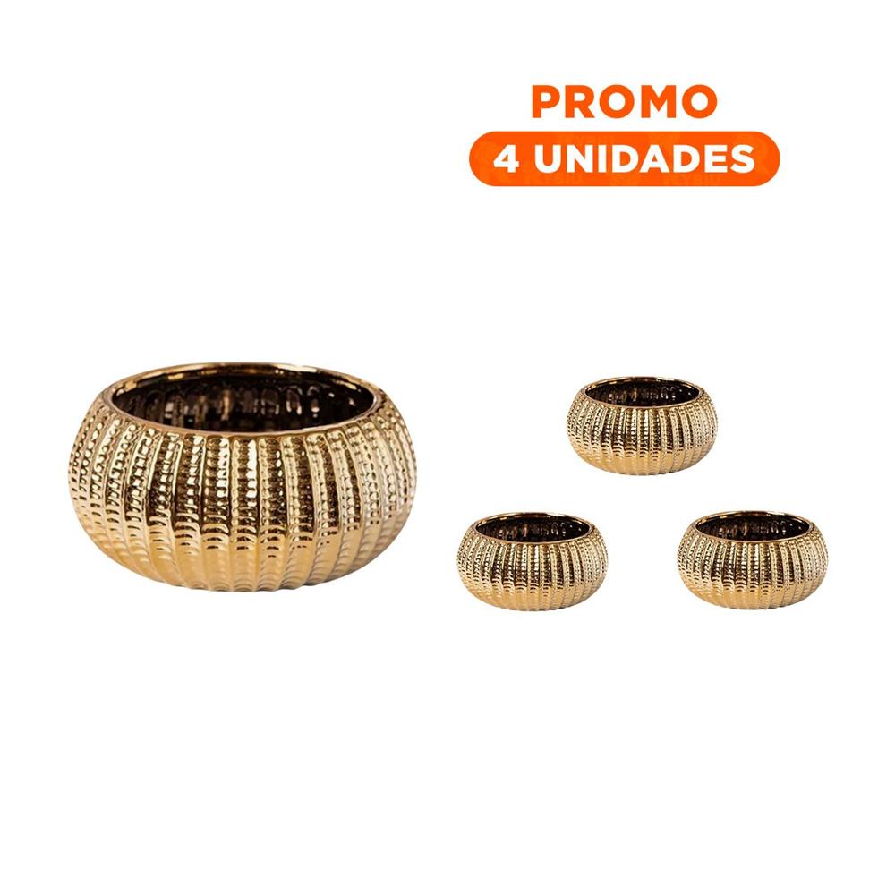 Pack4 Vasija Minimalista Ceramica Galvanizada 15x20x10.5cm Dorado Y+Regalo Sticker