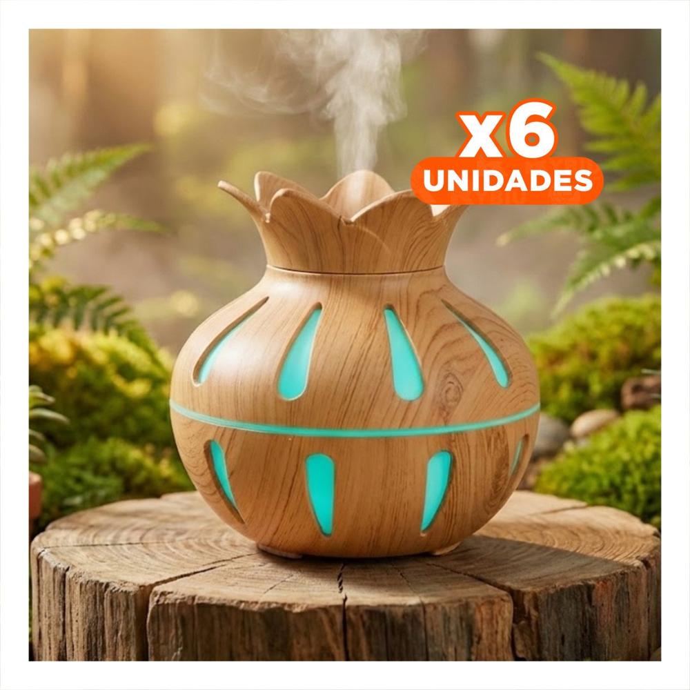 Pack6 Aparato con Funcion Humificadora Forma Floral Color Madera Claro 12x11cm Y+Papel Regalo