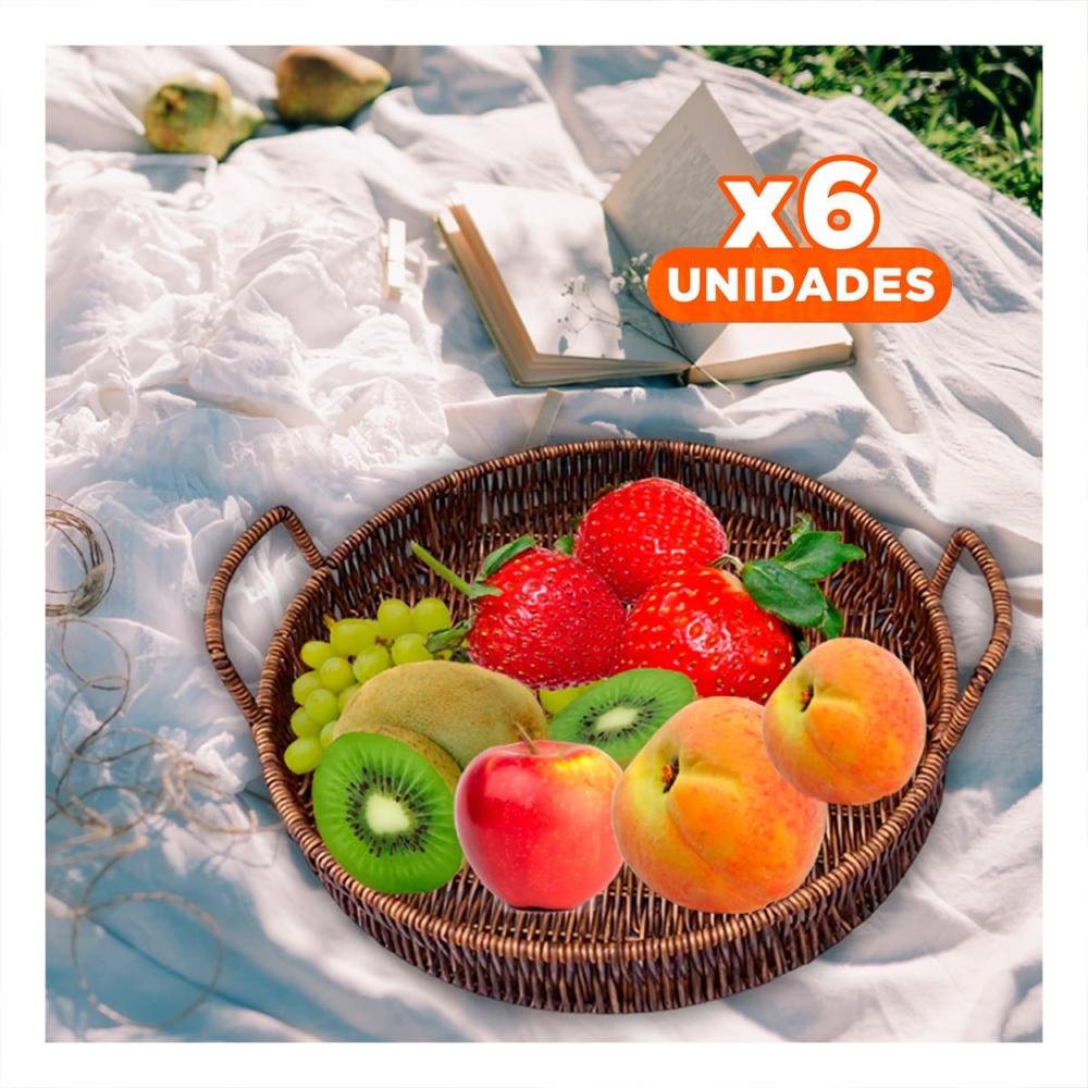 Pack6 Bandeja tejida circular con asas para organizar detalles en hogar marron Y+Regalo Sticker