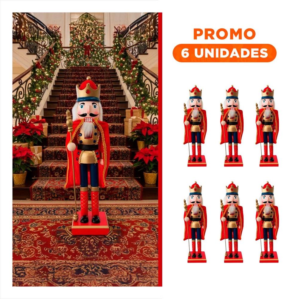 Pack6 Cascanuez con Corona, Capa y Baston en Color Rojo