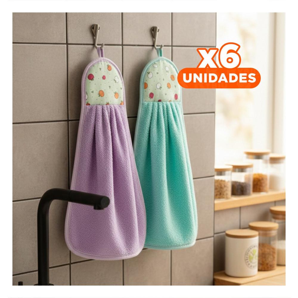 Pack6 Combo 2 Toallas de Mano Morado y Verde Agua Colgador Practico 28x38cm Y+Regalo Sticker