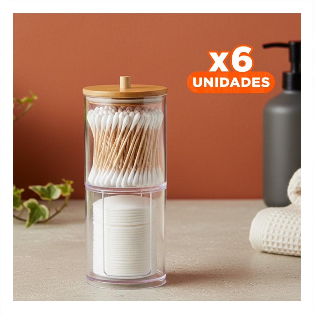 Pack6 Porta Hisopos Doble de Acrilico con Tapa de Madera Transparente Multiuso Y+Regalo Sticker