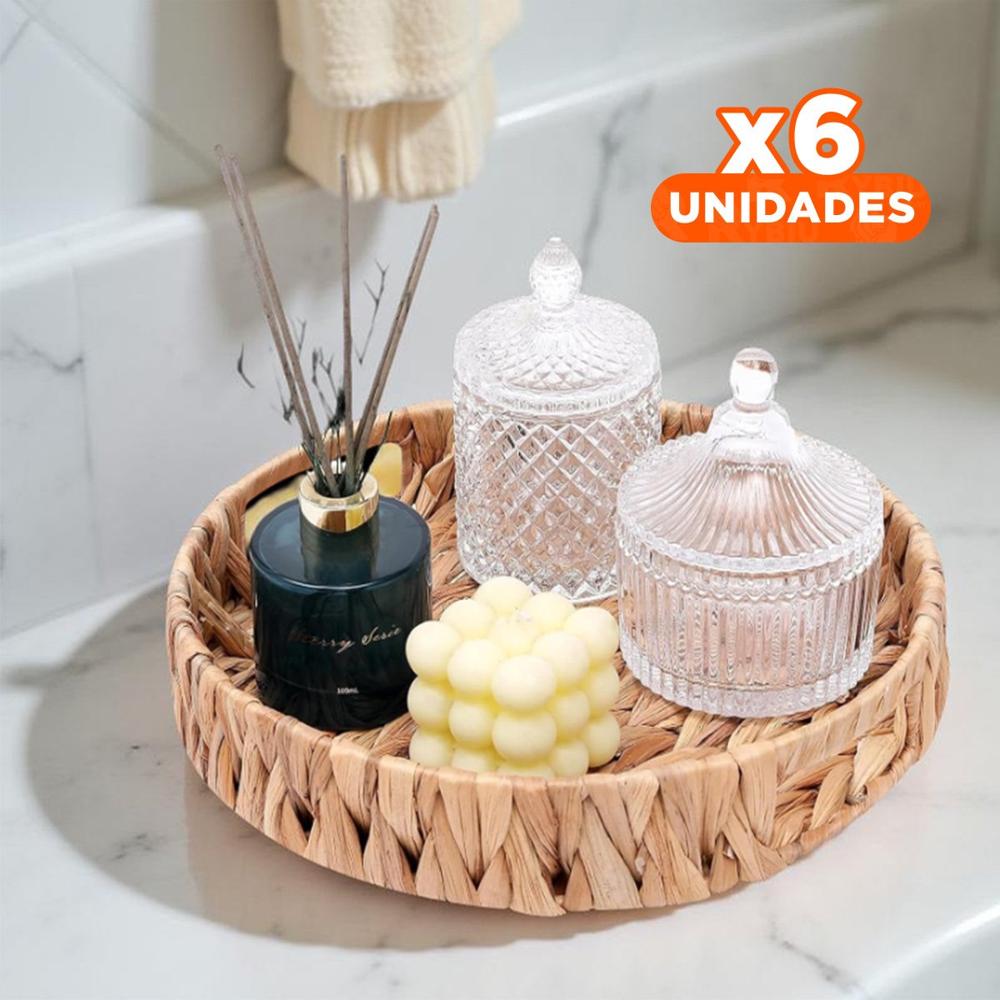 Pack6 Recipiente tejida circular con asas Grass 32x4cm mostaza para guardar ropa Y+Papel Regalo