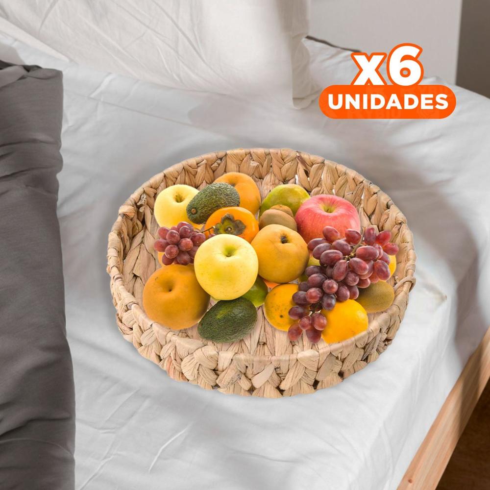 Pack6 Recipiente Tejido Circular Grass 23x4cm Mostaza Para Hogar Decorativa Y+Regalo Sticker