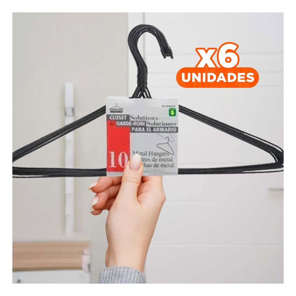 Pack6 Soporte Funcional de Alambre Negro con 10 Piezas 21x40cm para Ropa Y+Regalo Sticker
