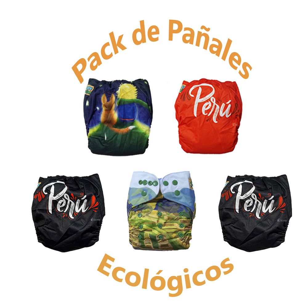 Pañal Ecológico de Tela - Pack x 5 unid para Bebe - Pañal de Tela - Pack x 5 unid para Bebe