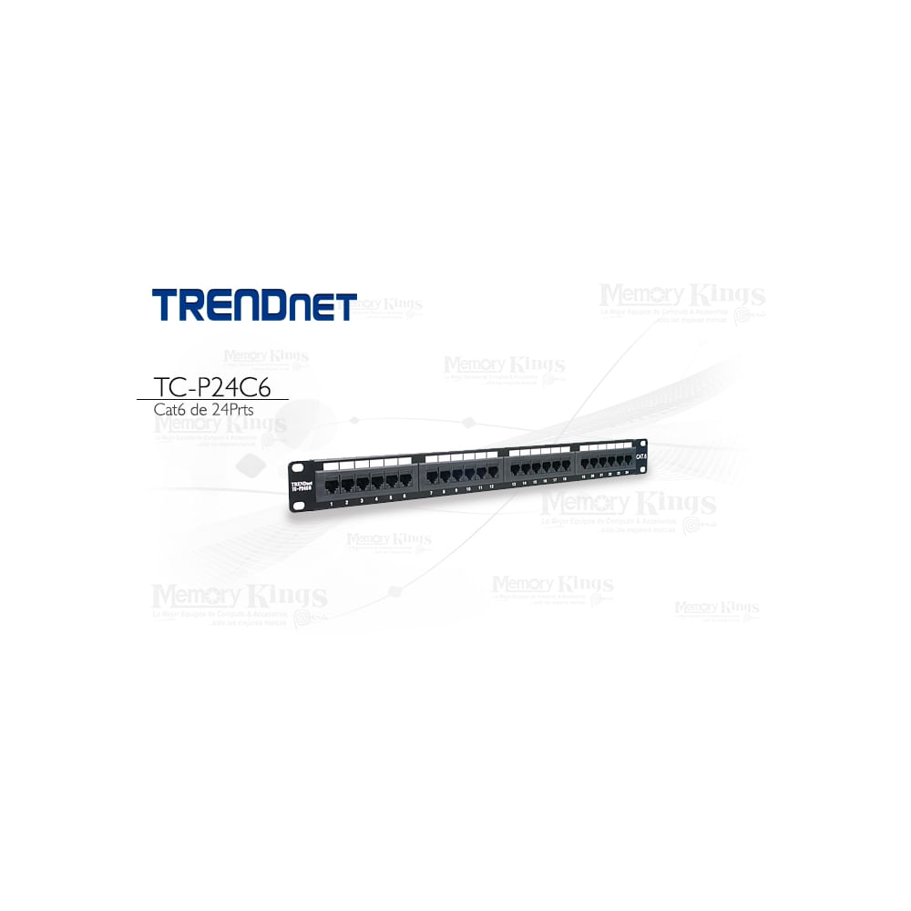 Panel de parcheo Cat6 de 24 puertos Trendnet TC-P24C6 para red Ethernet, alta velocidad y rendimien - SKU_TC-P24C6