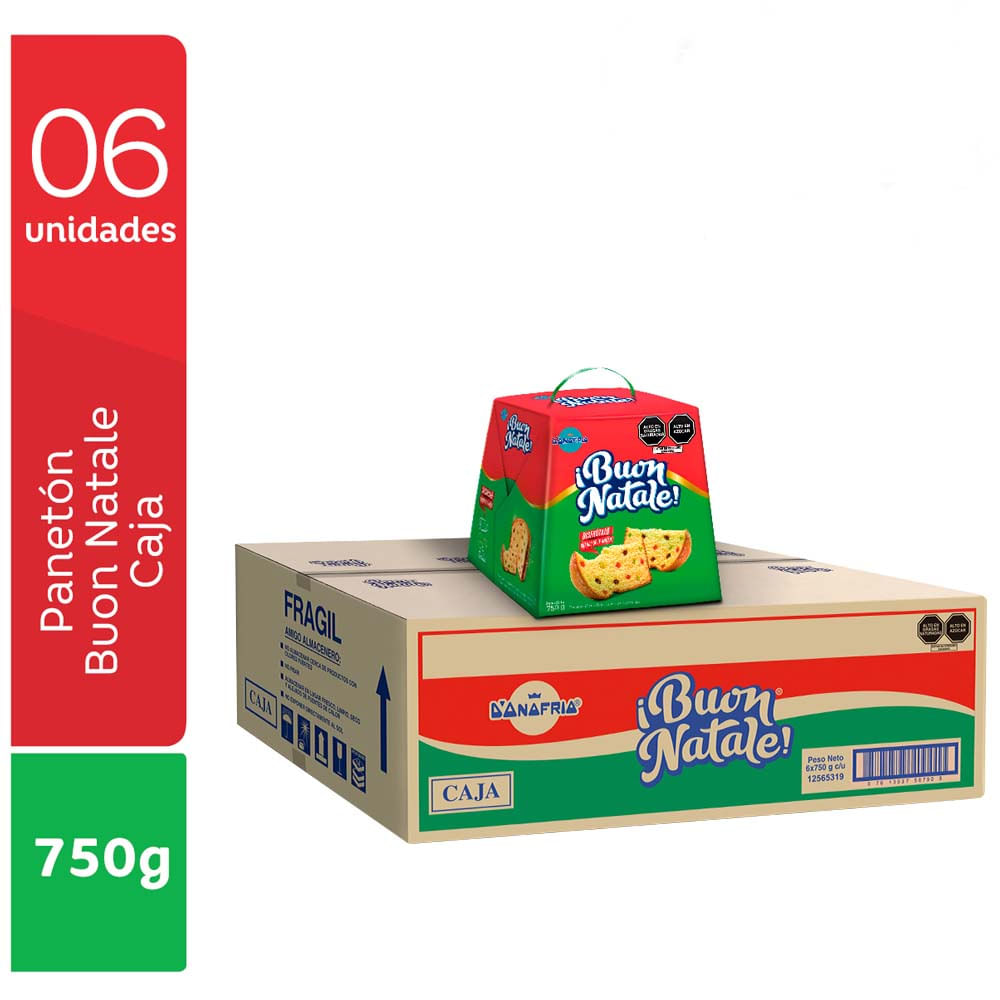 Panetón con Pasas y Frutas D'ONOFRIO Buon Natale Caja 750g Paquete 6un
