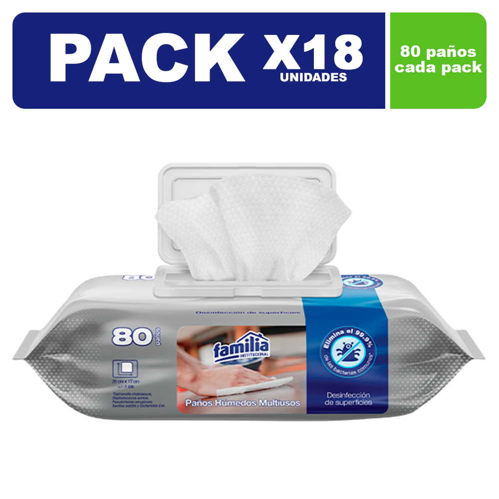 Paños Húmedos Antibacterial Familia Pack x18 de 80 Paños