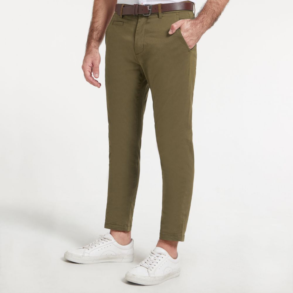 Pantalón Con Correa Slim Fit Marrón Malabar Hombre