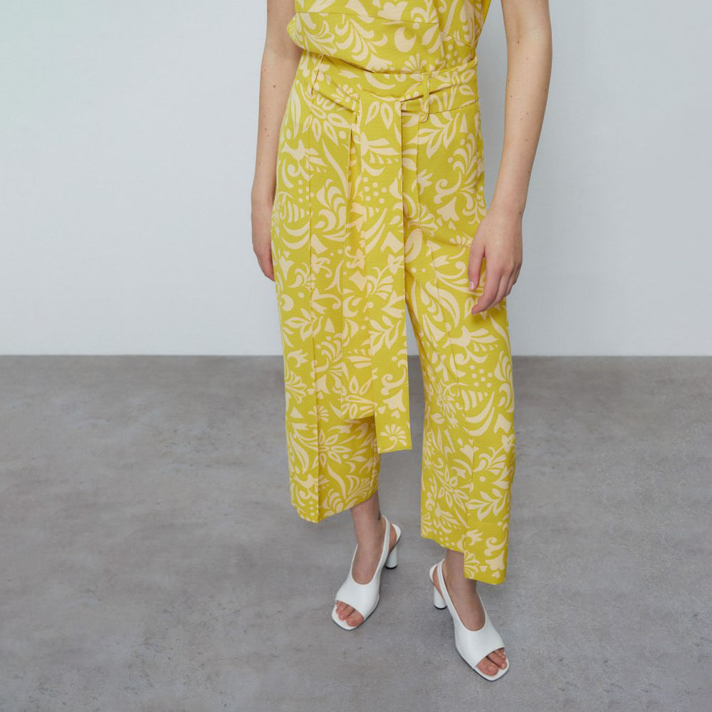 Pantalón Culotte Estampado Sfera Mujer Amarillo