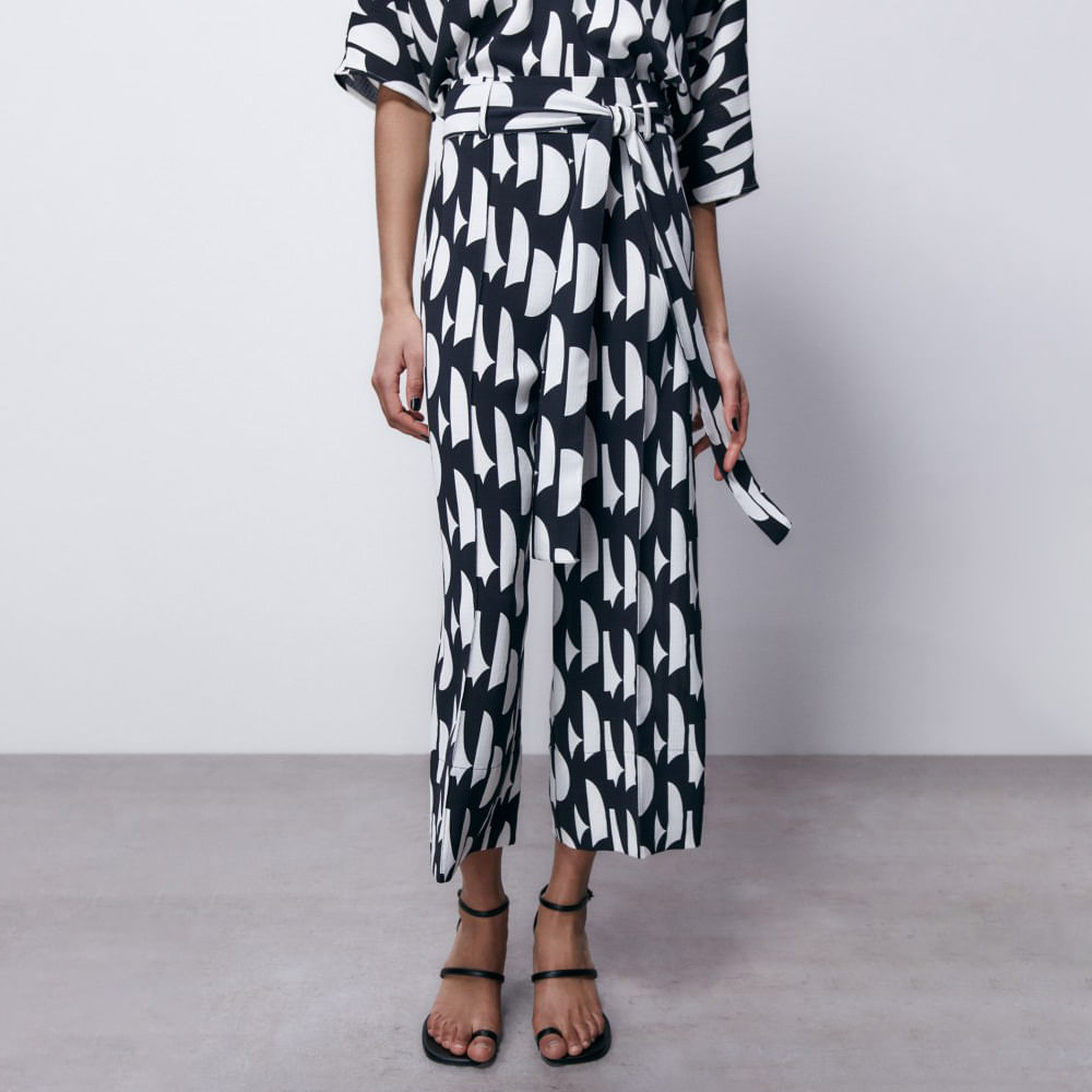 Pantalón Culotte Estampado Sfera Mujer Negro