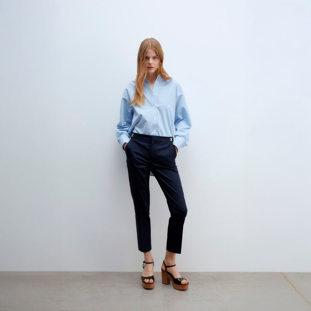 Pantalón Mujer Sfera Largo Pique Cinturon Mx Azul Marino