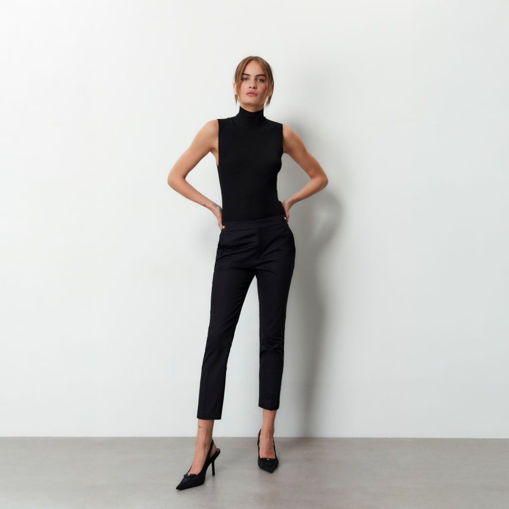 Pantalón Satén Hebilla Sfera Mujer Negro
