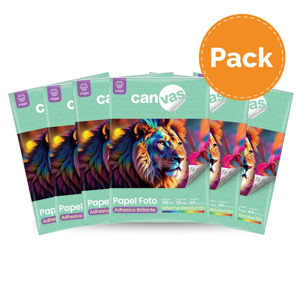 Papel Foto Canvas Adhesivo Brillante 135g 20 Hojas A4 Pack x6