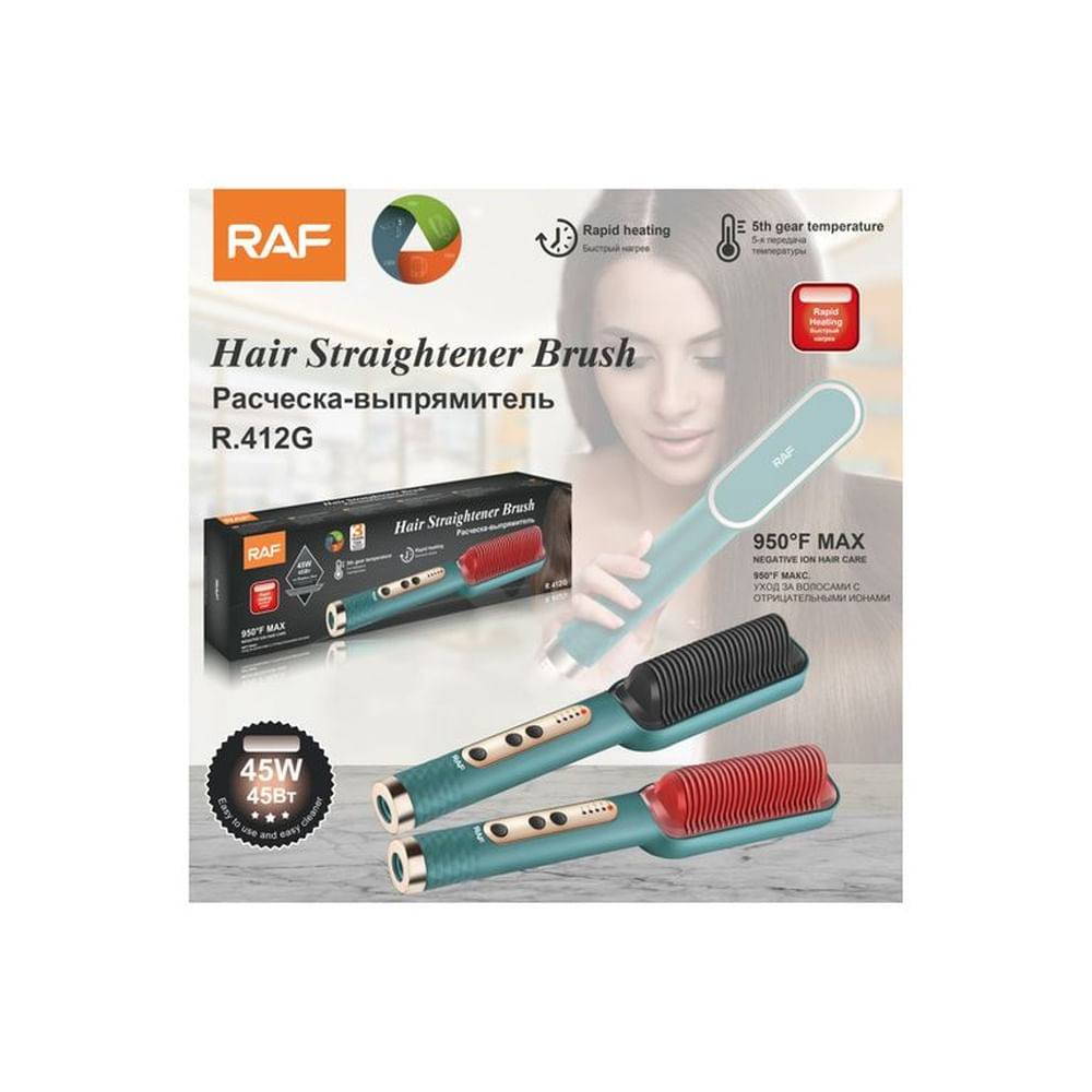 Peine Alisador Cepillo Eléctrico Raff Negro