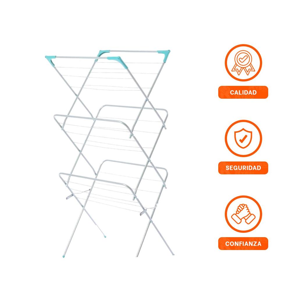 Perchero de Ropa Plegable 3 Niveles Blanco Version V Facil Uso Diario Y+Ligas Regalo
