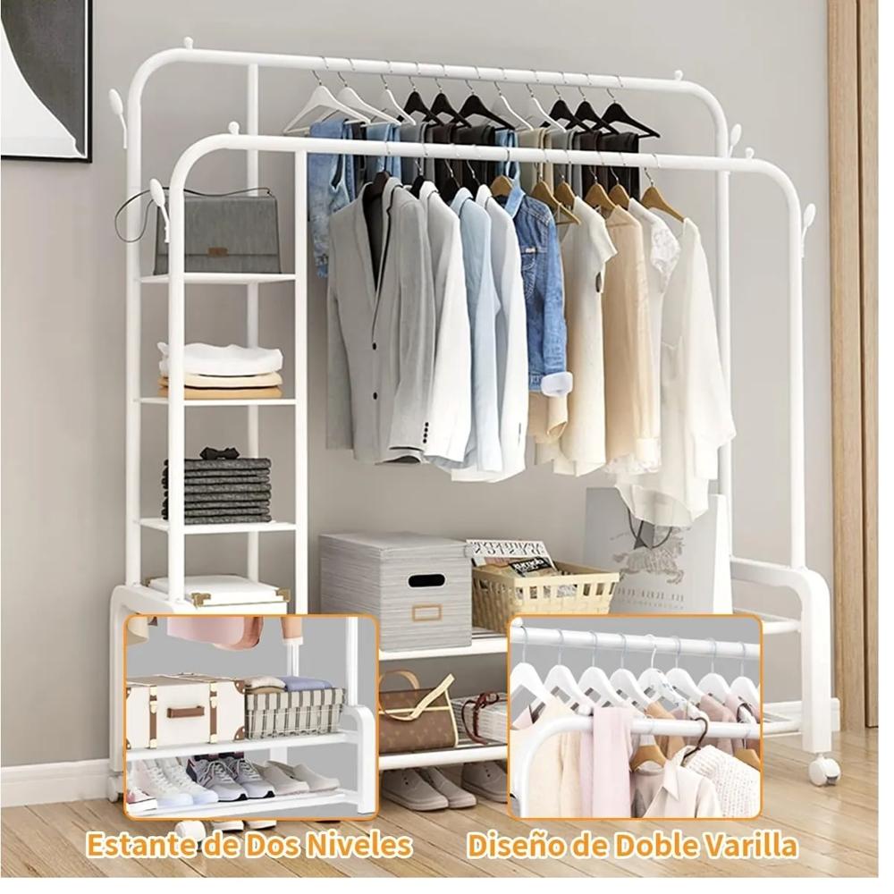 PERCHERO DOBLE BARRA CON ESTANTES LATERALES - COLOR ALEATORIO 1.20 x 1.60