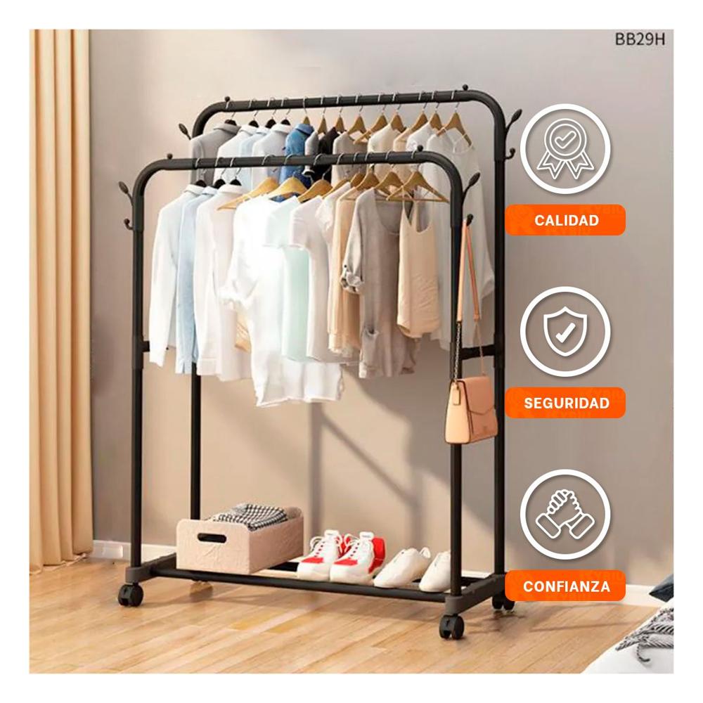 Perchero Estante Colgador Doble con 1 Nivel Inferior Negro Hogar Ordenado Y+Papel Regalo