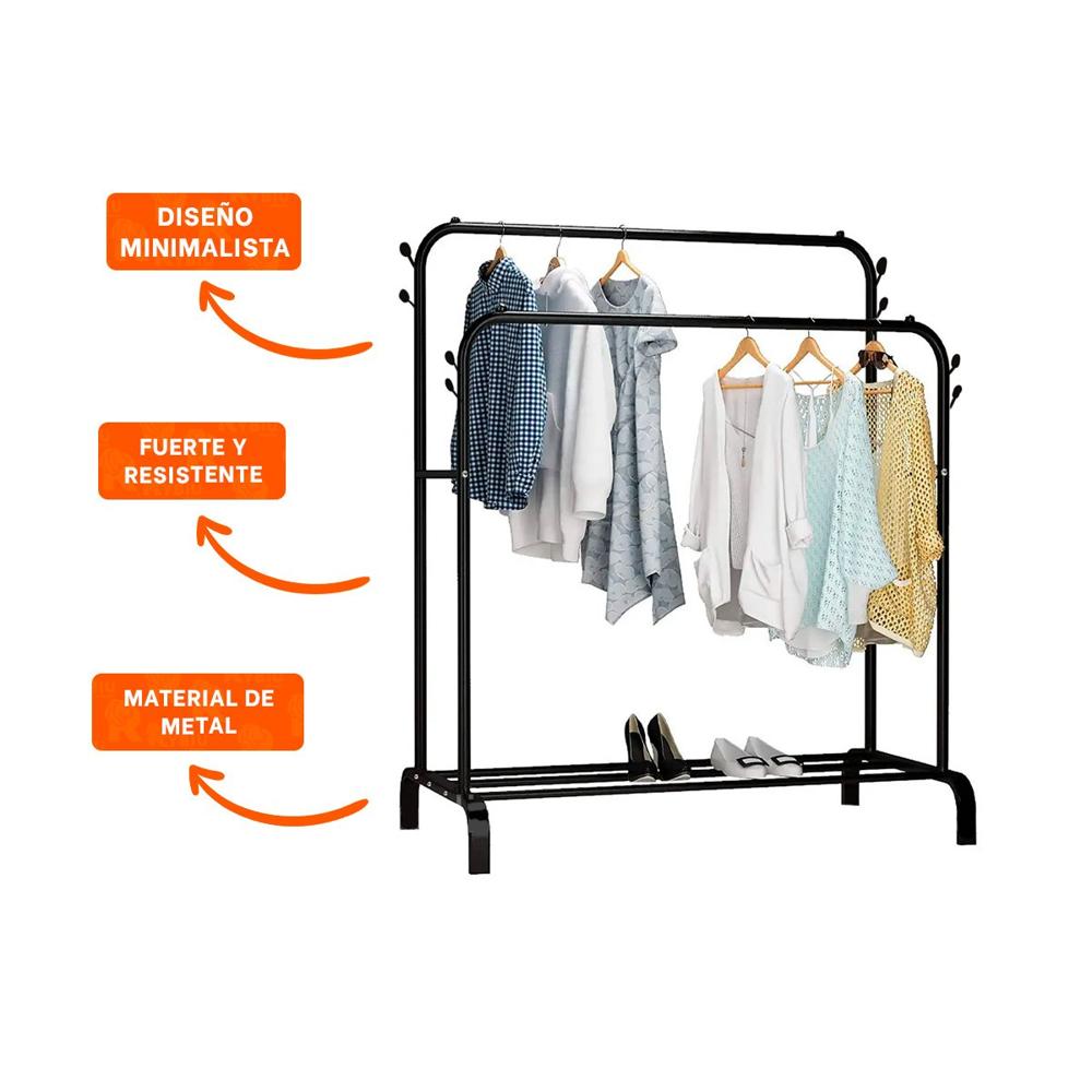 Perchero Estante Colgador Doble con 1 Nivel Inferior Negro Soporte Firme Y+Ligas Regalo
