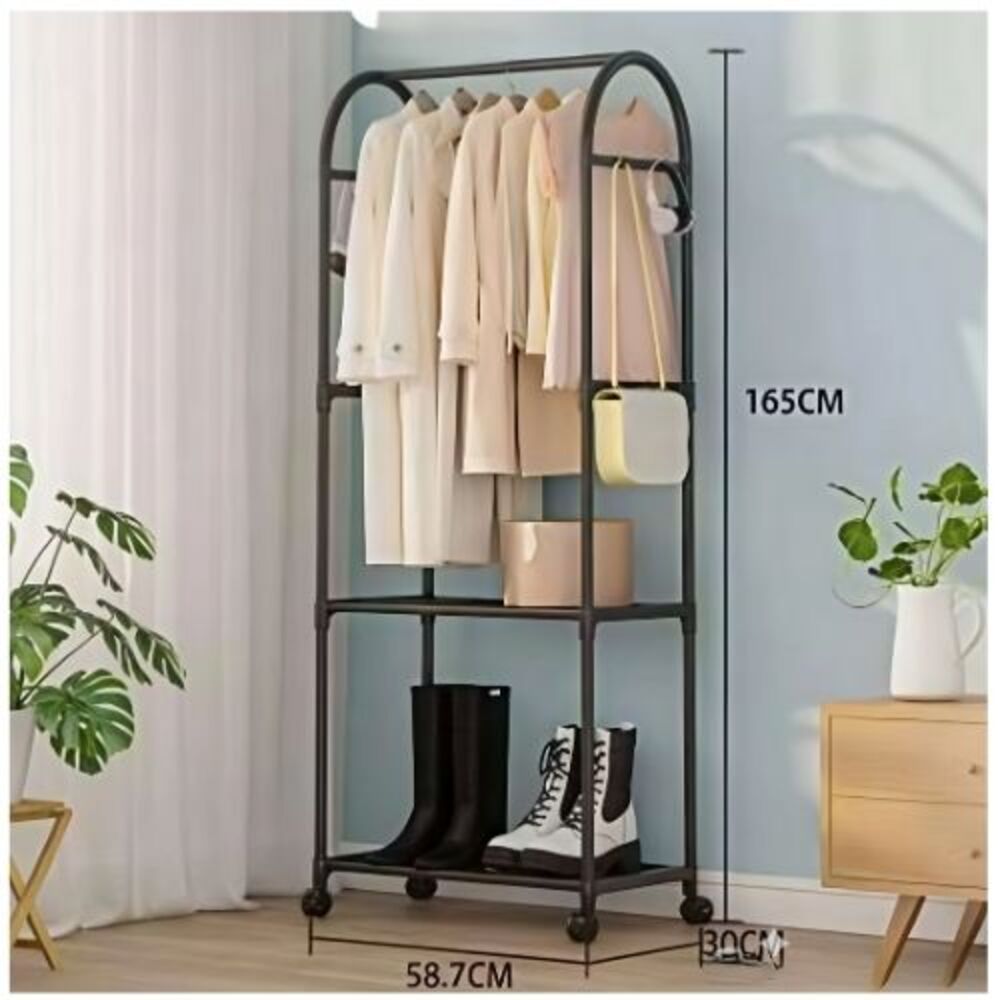 Perchero Organizador Estante de Ropa Zapatos de 2 Niveles Negro