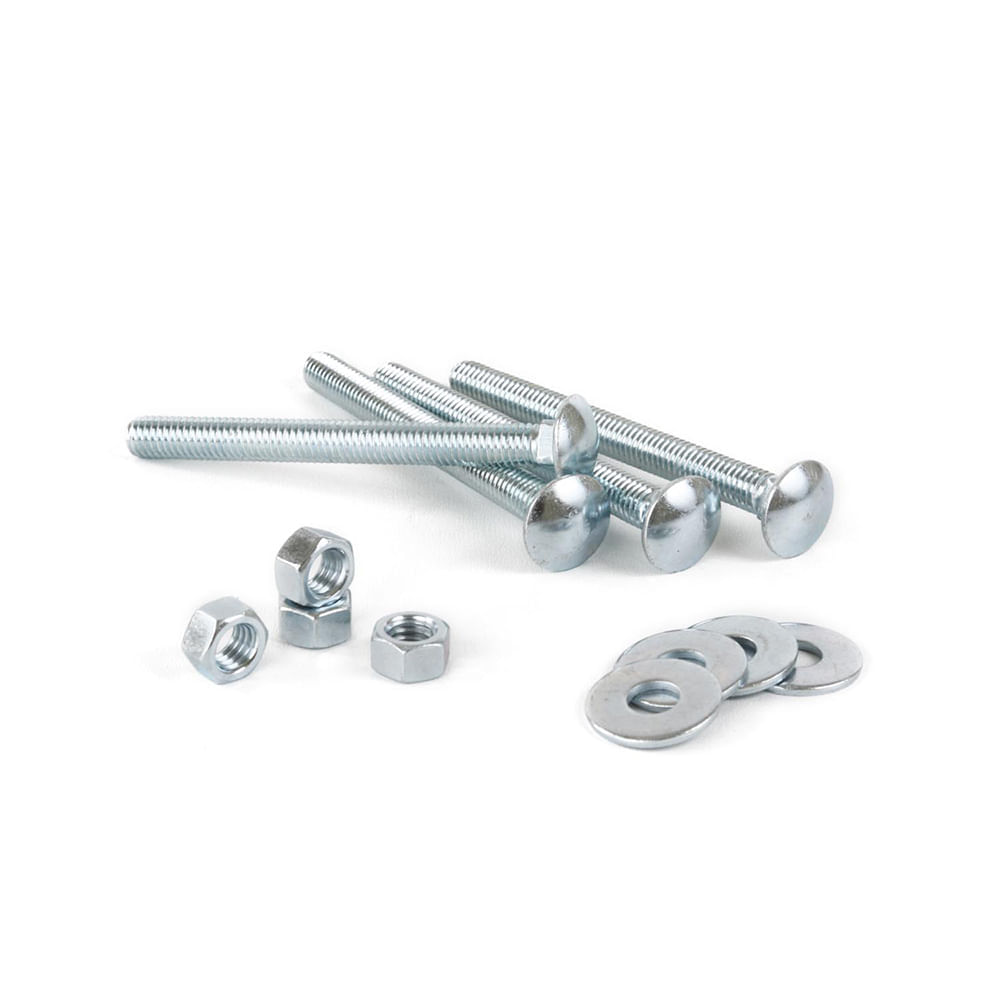 | Características | Fabricado en acero de bajo contenido de carbono, con acabado galvanizado, tipo de cabeza coche que brinda una terminación ovalada, cuenta con tipo de rosca de hilo corriente que cubre total o parcial la longitud del perno, que permite el uso de tuerca para su ajuste utizando llave mixta de boca/corona. |