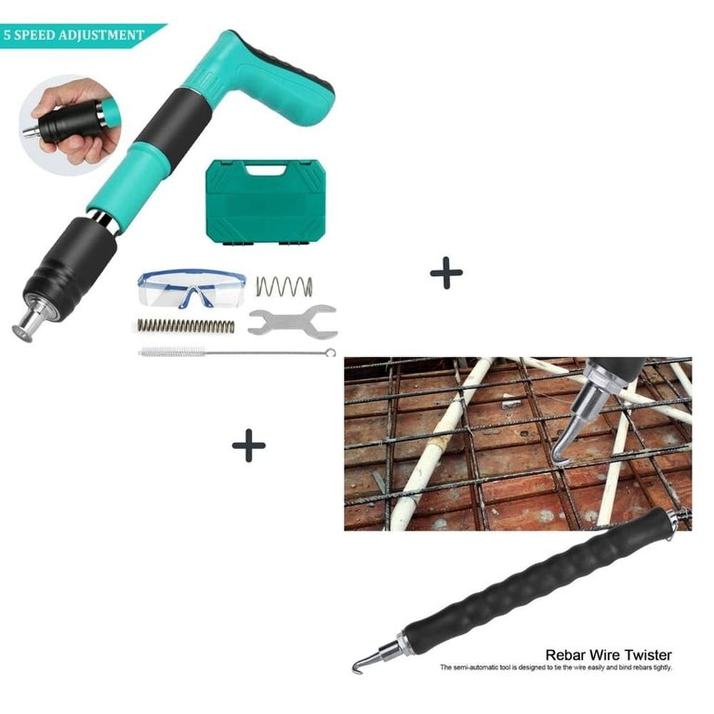 Pistola Fulminate De Clavos + Gancho Para Atar Alambre Barilla Plateado