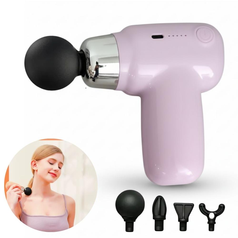 Pistola Masajeador 4 en 1 Masaje Muscular Multifuncional 5 Velocidades Morado