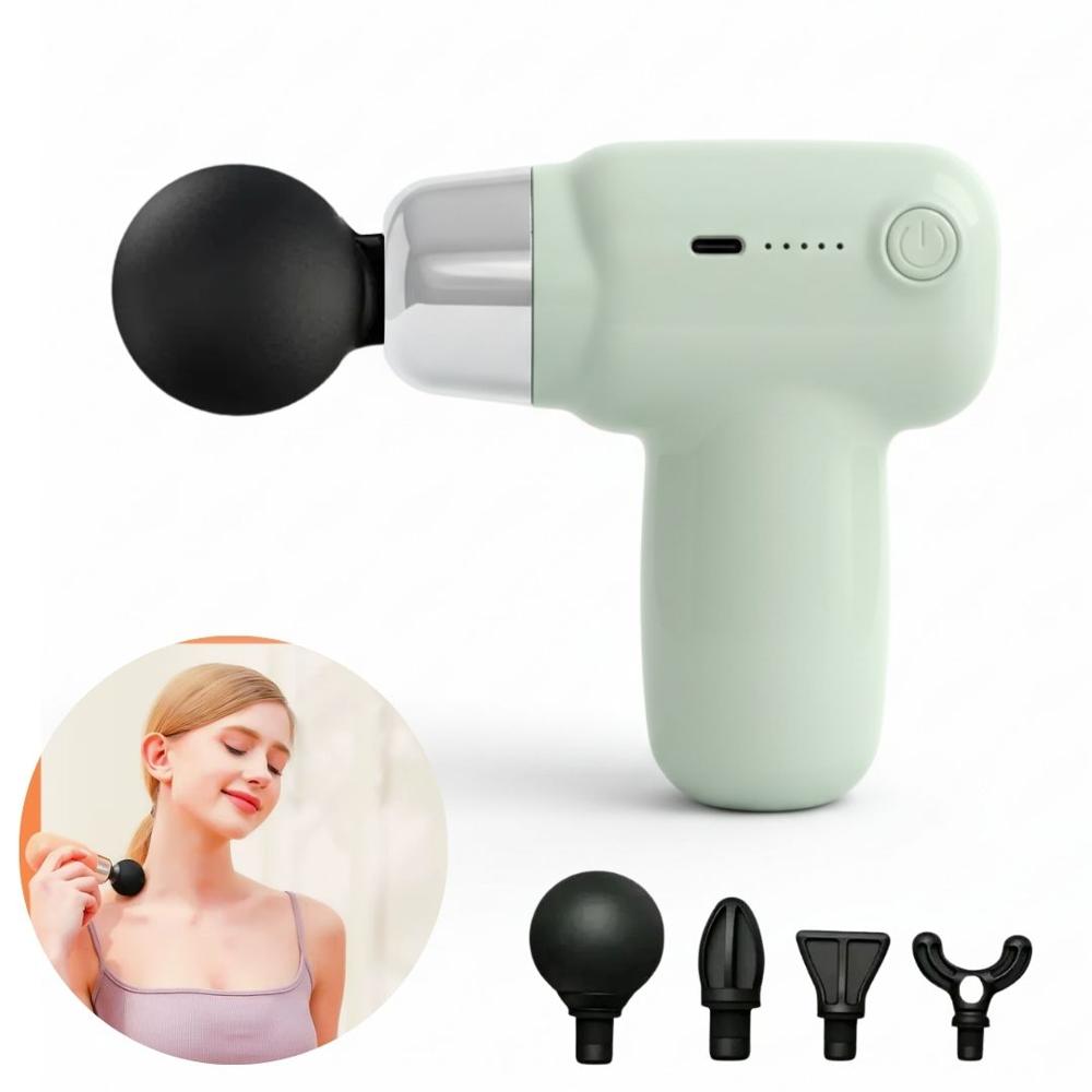 Pistola Masajeador 4 en 1 Masaje Muscular Multifuncional 5 Velocidades Verde