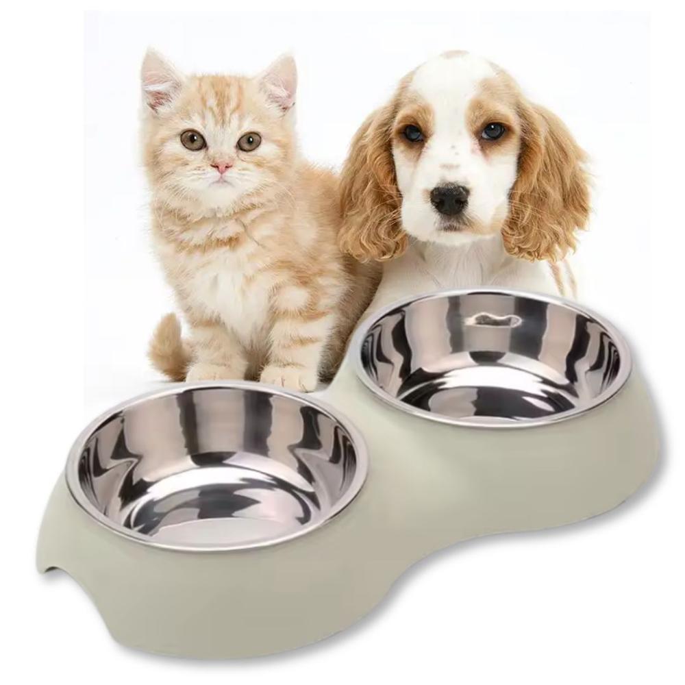 Plato con Doble Cuento para Mascota Comedero Bebedero Perros y Gatos Gris