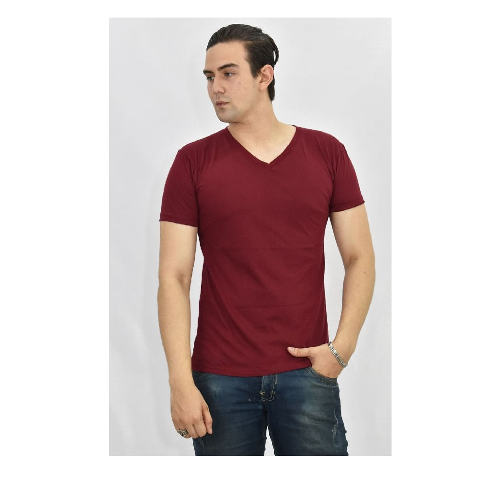 Polo Básico para Hombre cuello en V guinda Talla L