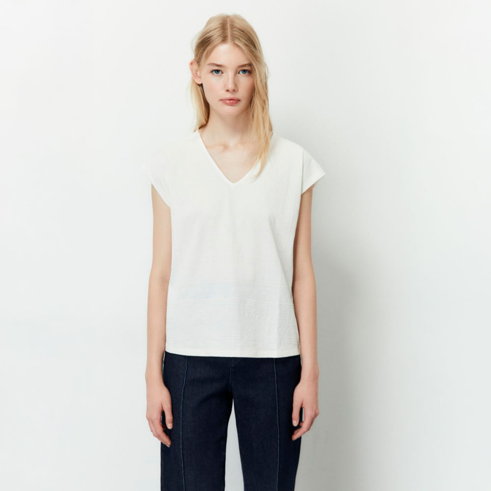 Polo Encaje Geométrico Sfera Mujer Crudo