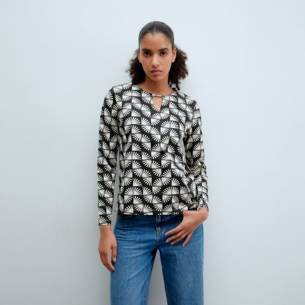 Polo Estampada Sfera Mujer Negro