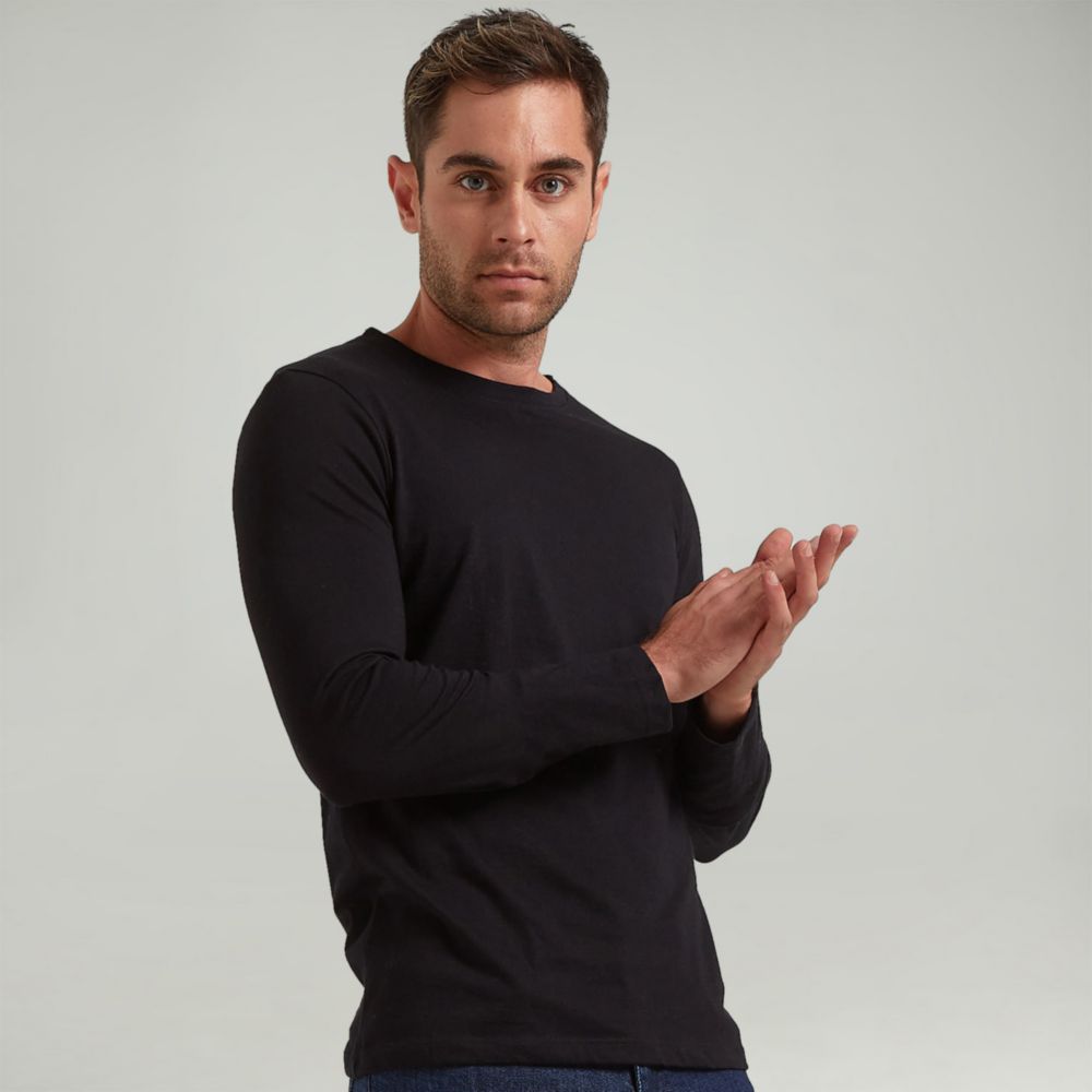Polo Malabar Manga Larga Cuello Redondo Cneck Negro Hombre
