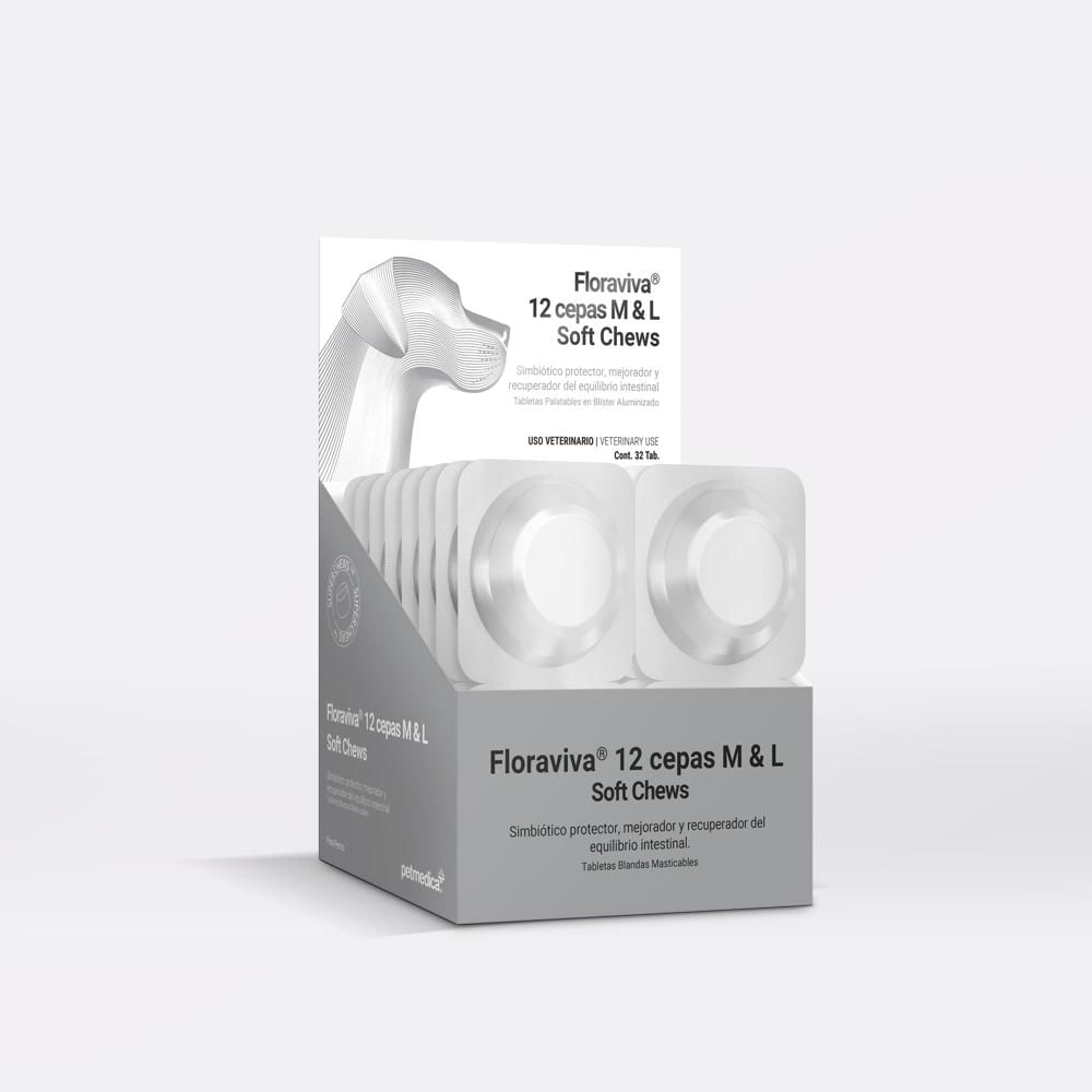 Probiótico y Vitaminico para Perros Floraviva® 12 Cepas Soft Chews Medium y Large x 32 Tabletas
