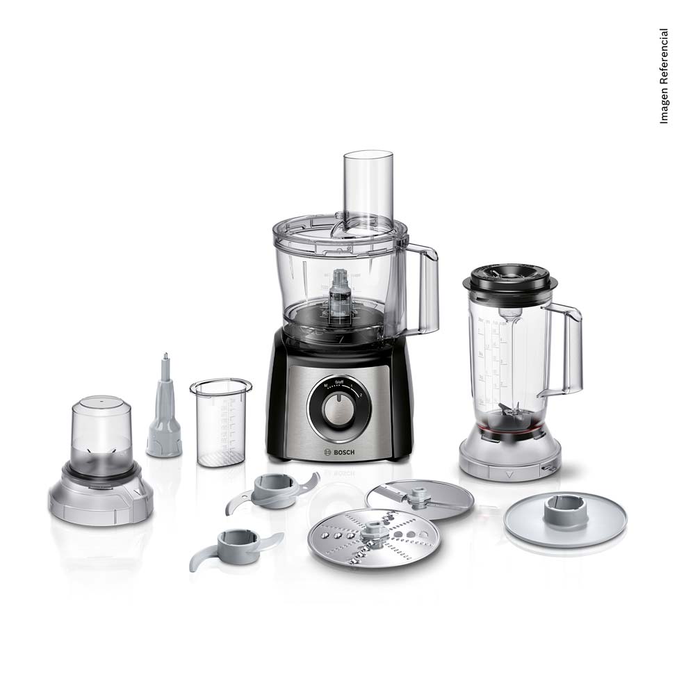 | Observaciones | Amplio bowl de 2.3 L con tapa transparente. 2 Velocidades + Pulse (Pulsador) Elegante diseño con base frontal en acero. Perilla iluminada. SmartStorage: los accesorios se pueden guardar en el recipiente y tenerlos a mano rápidamente Triple Sistema de seguridad: Tapa, acople y base antideslizante. Varios accesorios aptos para lavavajillas. |