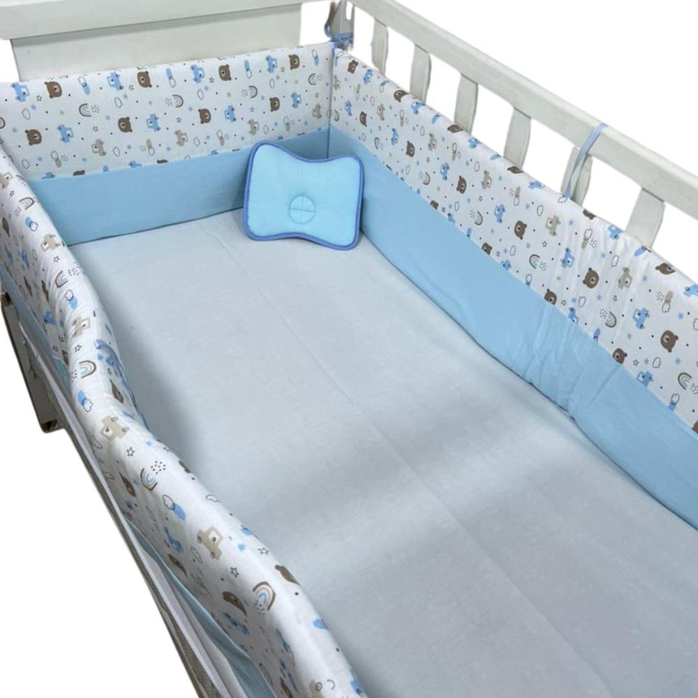 Protectores Laterales Parachoques De Baranda Para Cuna Con Almohadita Celeste