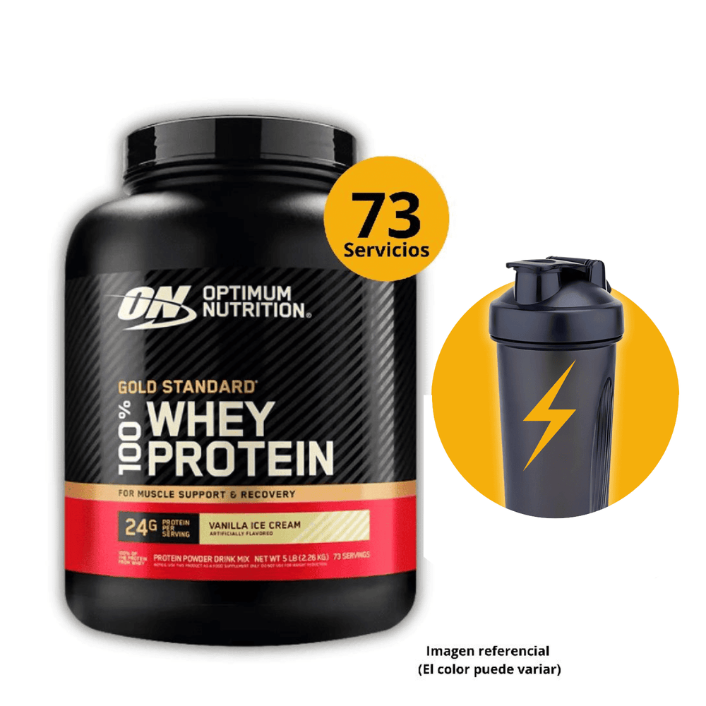 Proteína Gold standard whey 5lb Vainilla Optimum Nutrition -shaker